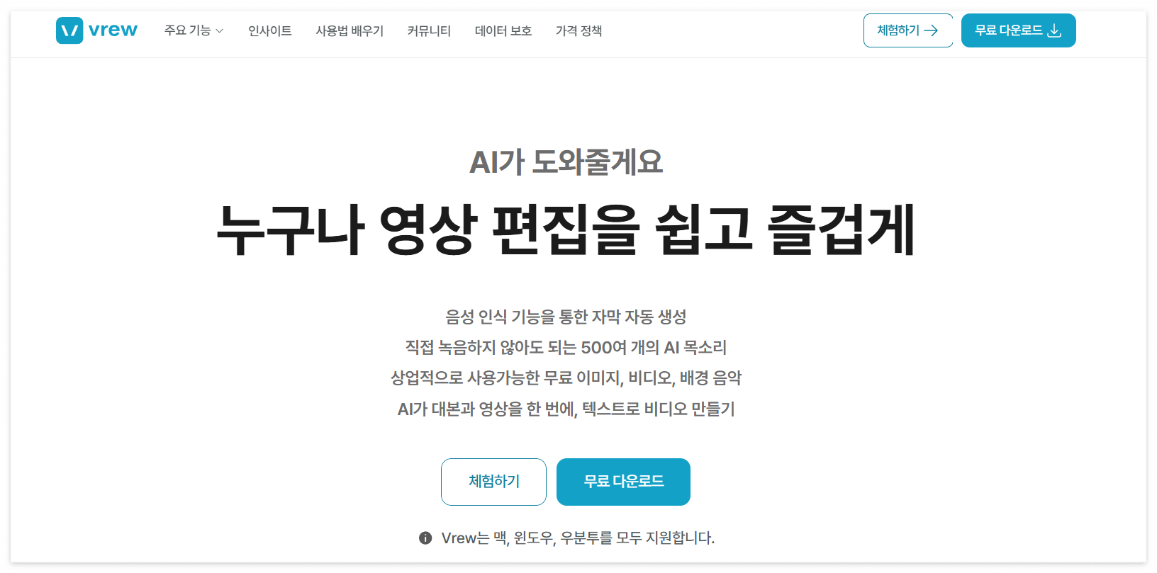 AI 기능 적극 활용: 자막 자동 생성, 무음 구간 삭제, 텍스트로 영상 만들기 등 브루의 AI 기능들은 초보자들을 위한 최고의 선물이죠! 적극적으로 활용해서 편집 시간을 확 줄여보기!