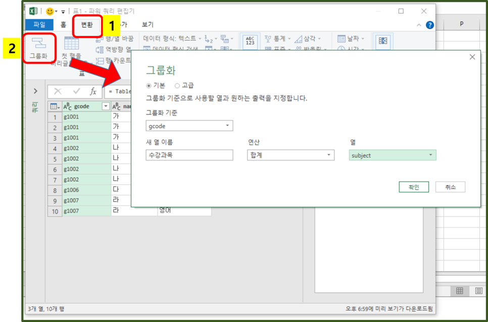 파워 쿼리의 준비가 된 것이죠