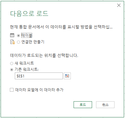 [파일]-[닫기 및 다음으로 로드..]를 선택합니다