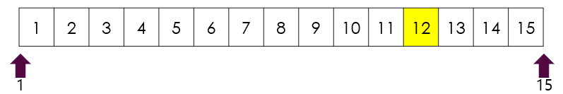 (예) (1+15)/2 = 8... 8과 검색값 12를 비교해서 찾고자하는 값이 8보다 크기때문에 8부터아래의 값은 버림