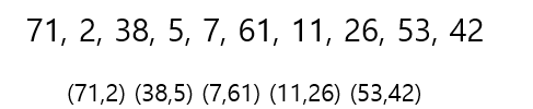 1회전 : 2, 71 5, 38, 7, 61, 11, 26, 42, 53