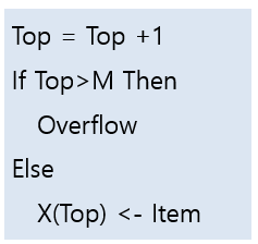 한쪽 끝으로만 삽입,삭제 가능, LIFO(Last In First Out)구조, 삽입-PUSH, 삭제-POP